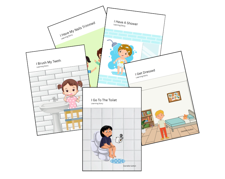 These five learning stories are visual tools that help young children build confidence with daily independence skills like toileting, dressing, brushing teeth, showering, and nail trimming. Simple, visual and supportive.